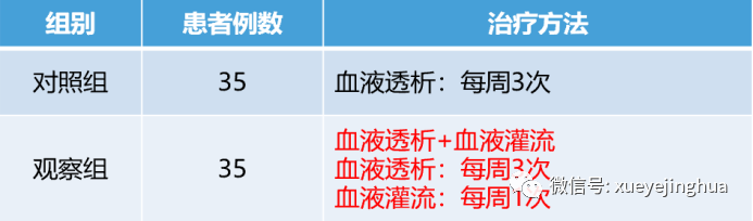 有研究者比較了血液灌流對于尿毒癥性瘙癢治療效果的觀察①,選取了70例尿毒癥伴皮膚瘙癢患者作為研究對象,分兩組,每組35人。對照組采用血液透析(HD)治療,每周透析3次。觀察組采用血液透析+血液灌流(HD+HP)的方式治療,每周血液透析串聯血液灌流治療一次,血液透析兩次。其中,觀察組使用的血液灌流器為淄博康貝醫療器械有限公司生產的雪凈品牌RA130型樹脂血液灌流器。比較兩組實驗結果。
